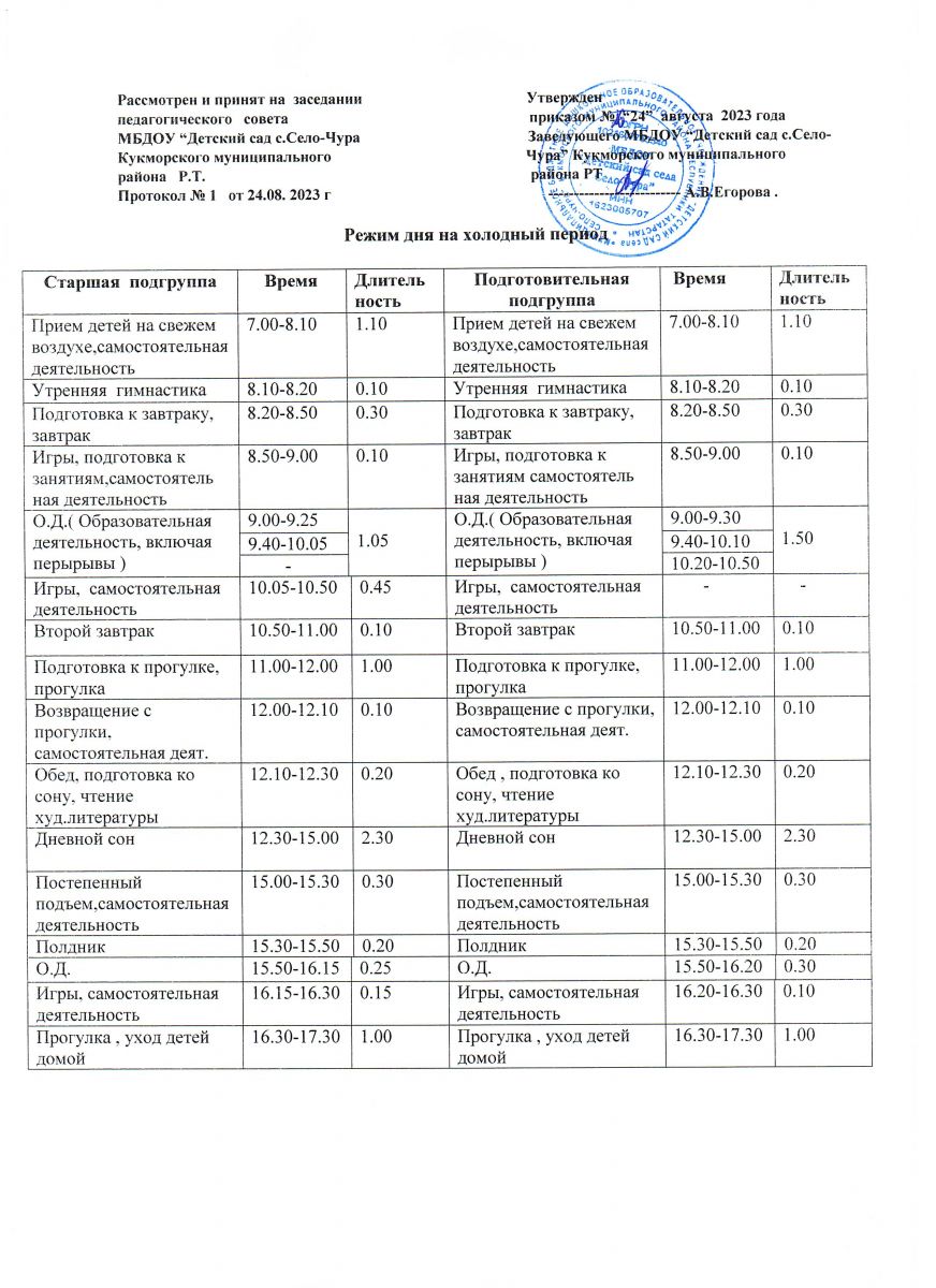 Режим дня старшей,подготовительной подгруппы на холодный период 2023-2024 учебный год
