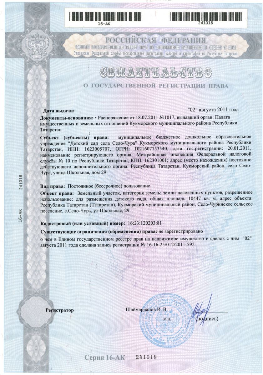 Короткое название: МБДОУ "Детский сад с.Село-Чура" Кукморского муниципального района