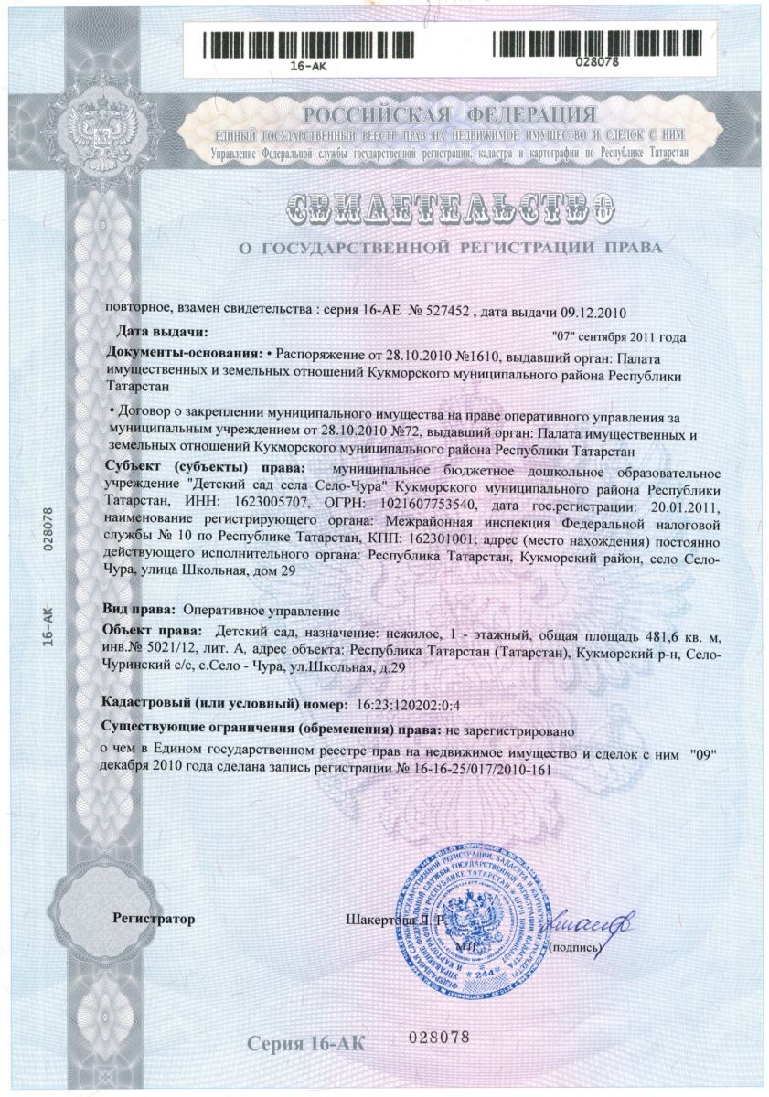 Короткое название: МБДОУ "Детский сад с.Село-Чура" Кукморского муниципального района