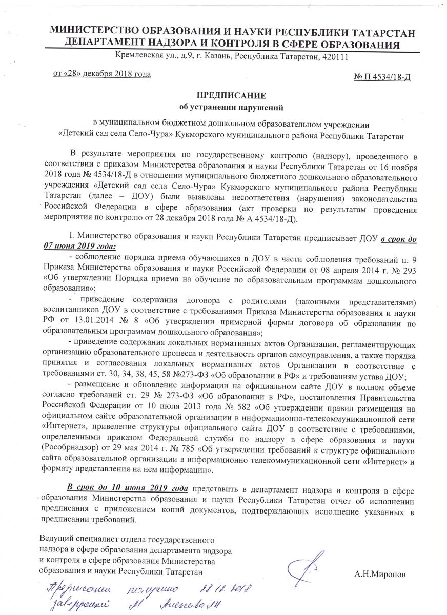 Отчет об исполнении предписания департамента надзора и контроля в сфере образования