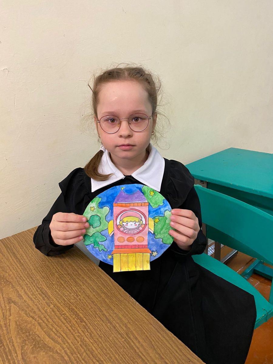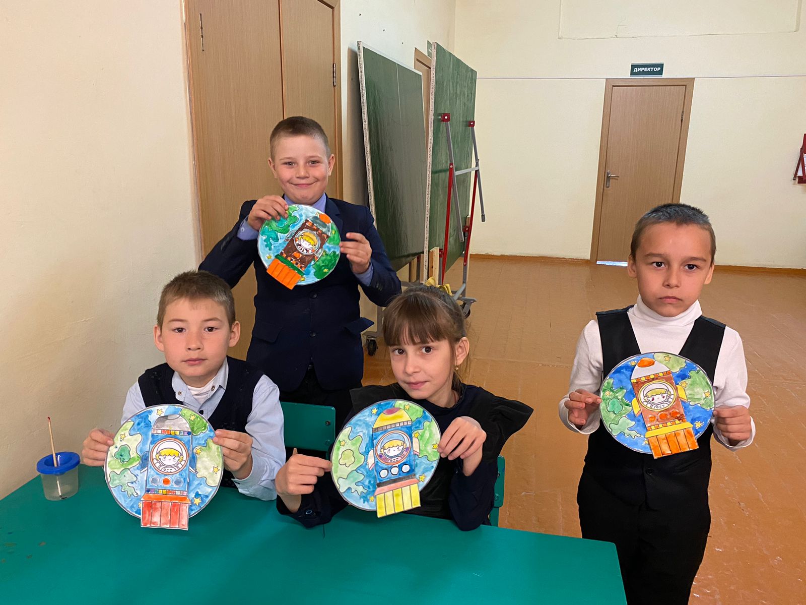 2 а класс озайтылган көн төркеме вакытында Космонавтика көненә рәсемнәр конкурсында катнашты.
