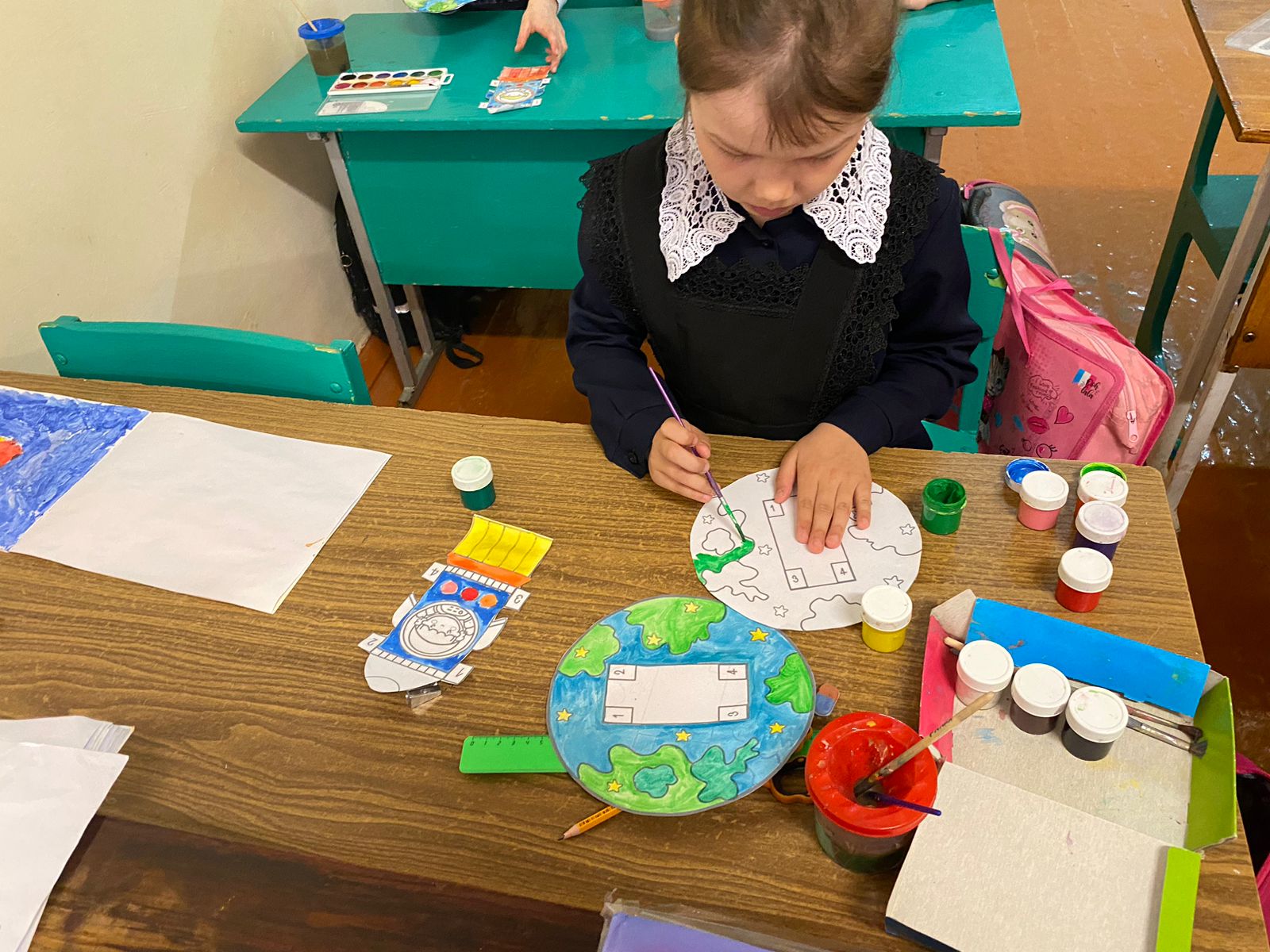 2 а класс во время группы продленного дня приняли участие в конкурсе рисунков ко Дню космонавтики/