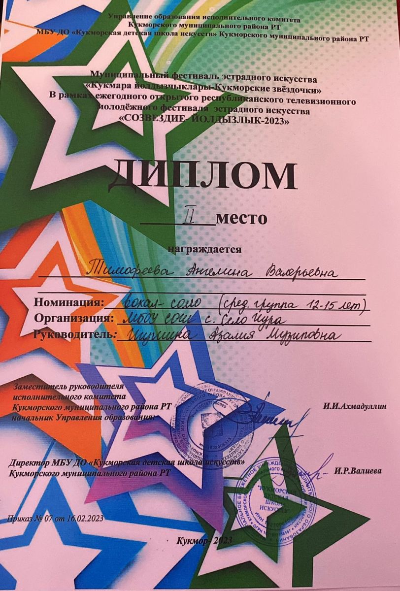 20февраля накануне Международного дня родного языка в КСШ 3 прошёл фестиваль "Халкым минем", в рамках Года национальных культур и традиций. Педагоги и обучающиеся нашей школы были награждены дипломом 1степени. / 20февральдә Кукмараның 3нче номерлы мәктәбендә Халыкара туган тел көненә багышланган "Халкым минем" фестивале үтте. Әлеге чара милли традицияләр һәм гореф-гадәтләр елы кысаларында үткәрелде. Мәктәбебез укытучылары һәм укучылары 1дәрәҗә диплом белән бүләкләнделәр.