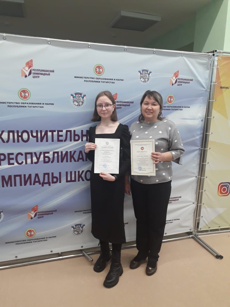 С 15 по17 февраля в г. Казани прошел заключительный этап республиканской олимпиады по русскому языку среди учащихся школ с обучением на родном (нерусском) языке. Учащиеся нашей школы Айсина Адиля Ленаровна (учитель Крибова И.Л.) и Емельянова Анастасия Валерьевна (учитель Данилова Л.В.) показали хорошие результаты на олимпиаде. Емельянова А.В. (уч. 8 кл.) стала призёром. Поздравляем Анастасию и её учителя Ларису Васильевну с победой! Желаем дальнейших успехов в учебе и выражаем благодарность учителям подготовивших олимпиадников! / 15-17 февраль көннәрендә Казан шәһәрендә туган телдә белем алучы мәктәп укучылары арасында рус теле буенча олимпиаданың республика йомгаклау этабы узды. Безнең мәктәп укучылары Айсина Әдилә Ленар кызы (укытучысы Крибова И.Л.) һәм Емельянова Анастасия Валерьевна (укытучысы Данилова Л. В.) олимпиадада яхшы нәтиҗәләр күрсәттеләр. Емельянова А.В. (8 нче сыйныф) призер булды. Анастасия һәм аның укытучысы Лариса Васильевнаны җиңүләре белән котлыйбыз! Алга таба да уңышлар телибез һәм укучыларны олимпиадага әзерләгән укытучыларга рәхмәтебезне белдерәбез!