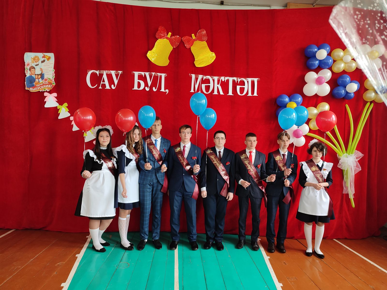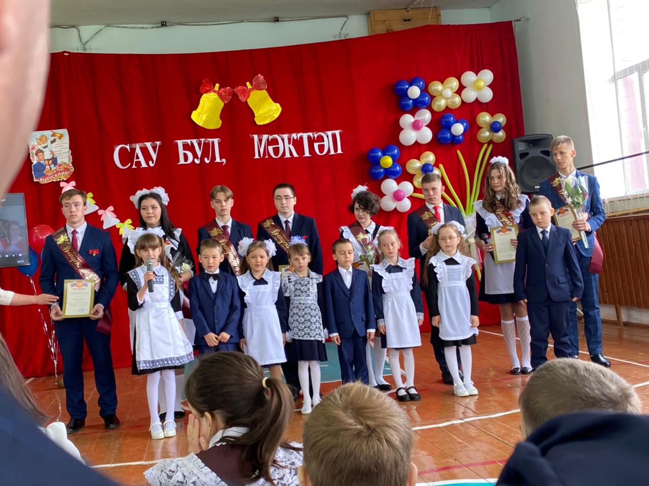 Сегодня прозвенел последний звонок для 8 выпускников из 9, 11классов. Праздник прошел на высокой ноте. Пусть и ваш путь будет таким же прекрасным, как сегодняшний праздник! В Добрый путь, дорогие наши выпускников!/Бүген 9, 11нче сыйныфның 8 укучысы өчен соңгы кыңгырау яңгырады. Бәйрәм бик матур үтте. Укучыларыбызның алдагы юллары да бүгенге бәйрәм кебек матур, сикәлтәсез булсын иде! Хәерле юл, кадерле укучыларыбыз!
