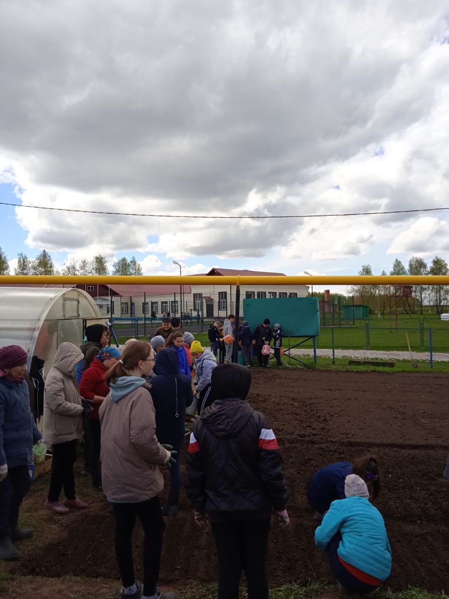 С наступлением весны возобновилась работа на пришкольной участке. Теплые деньки дали возможность посадить будущий урожай. И педагоги и обучающиеся школы постарались на славу./ Яз житү белән мәктәп яны тәҗрибә участогында эшләр җанланды. Җылы кояш карау белән укучыларыбыз һәм укытучыларыбыз булачак уңышны чәчүдә үз өлешләрен керттеләр.