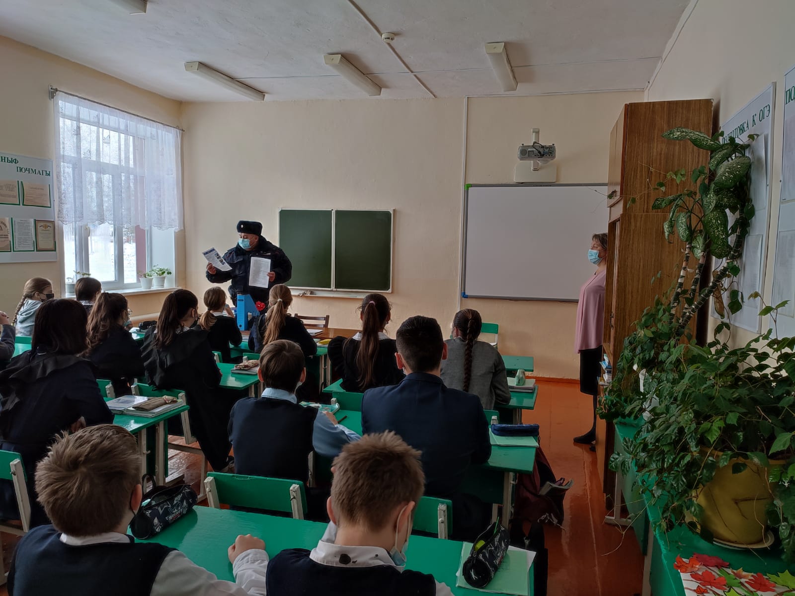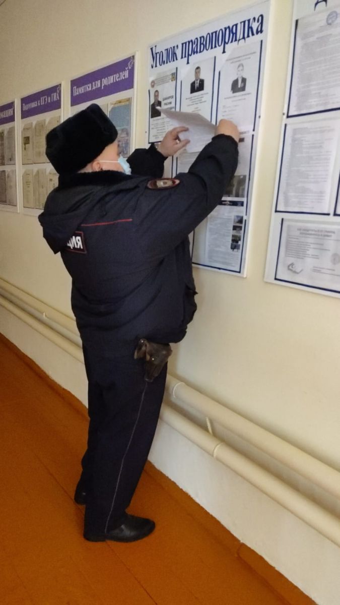 Участковый инспектор Шакиров Р.Р. провел профилактическую беседу с обучающимися 8-11классов./Эчке эшләр бүлеге хезмәткәре Шакиров Р.Р. 8-11нче сыйныф укучылары белән профилактик әңгәмә үткәрде.