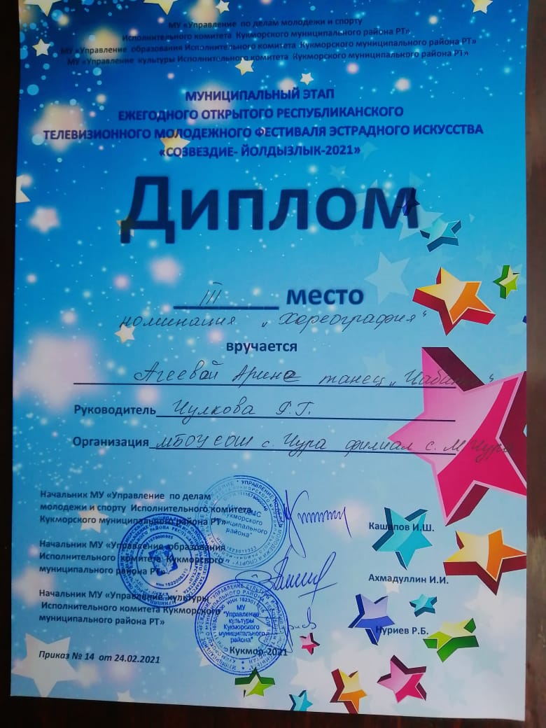 Воспитанники филиала нашей школы детского сада села Малая Чура и Поршур приняли активное участие и заняли призовые места в муниципальном этапе ежегодного фестиваля эстрадного искусства "Созвездие- Йолдызлык-2021."