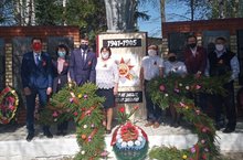 В этом году мы отмечаем 75 годовщину Великой Победу. К огромному сожалению, мы вынуждены отмечать этот праздник дома. Но не смотря на все трудности и соблюдая все требования учащиеся и учителя нашей школы, совместно с главой поселения, возложили юбилейный венок к памятнику неизвестному солдату./ Быел без Бөек Җиңүнең 75 еллыгын бәйрәм итәбез. Кызганычка каршы, без әлеге матур бәйрәмне өйләребездә каршыларга мәҗбүрбез. Барлык кыенлыкларга карамастан, шулай ук бөтен таләпләрне үтәп, мәктәбебез укучылары һәм укытучылары, җирлек башлыгы белән берлектә, юбилей уңаеннан ясалган венокны һәйкәлгә салу тантанасында катнаштылар.
