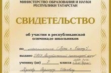 Мәктәбебез укучылары республикакүләм укучылар олимпиадасының муниципаль этабында уңышлы катнаштылар. Абросимова Р.А.(10нчы сыйныф) рус әдәбиятыннан (укытучысы- Данилова Л.В.), Григорьева Ю.Э.(8нче сыйныф) әдәбияттан (укытучысы- Данилова С.Г.) җиңүче дәрәҗәсенә ирештеләр. Рус әдәбиятыннан 8 нче сыйныф укучысы Крибова А.Г. (укытучысы- Данилова Л.В.), татар теленнән 5 нче сыйныфтан Иванова Э.В., 8 нче сыйныфтан Григорьева Ю.Э., 10 нчы сыйныфтан Афанасьева И.В. (укытучылары - Данилова С.Г.), 6 нчы сыйныфтан Карпова Э.С. һәм Афанасьева П.А. (укытучылары – Карпова Е.С.) призер исеменә лаек булдылар. Укучыларны һәм укытучыларны җиңүләре белән котлыйбыз! Һәр эшләрендә уңышлар телибез. Алга таба аларга яңадан-яңа үрләр яуларга насыйп булсын!!!
