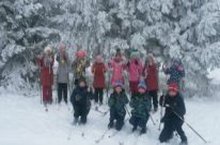 Учащиеся 4 класса вместе с классным руководителем совершили лыжную прогулку в зимний лес.