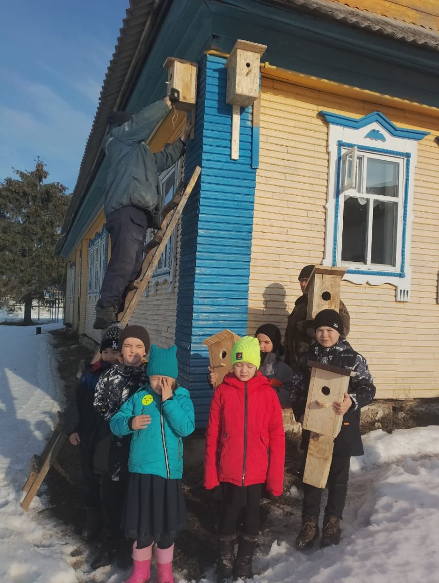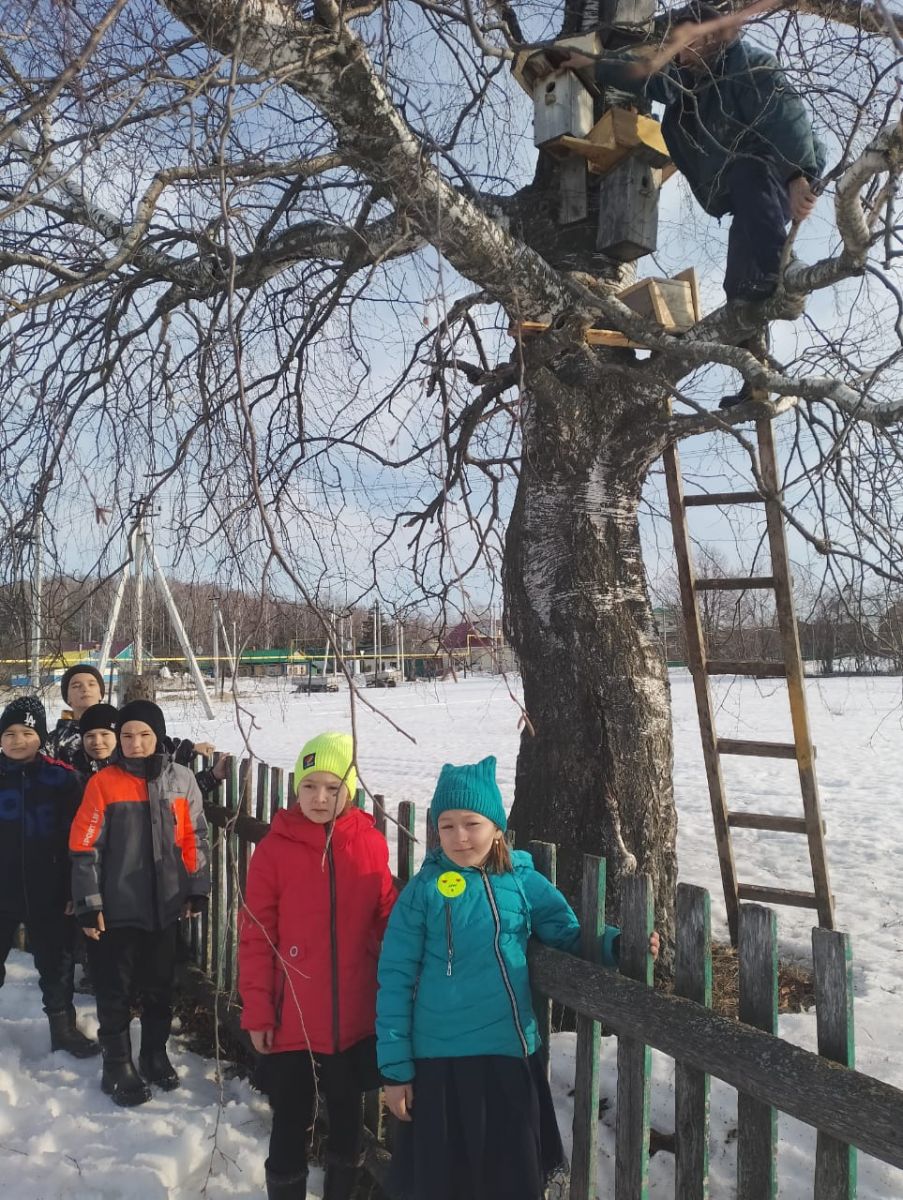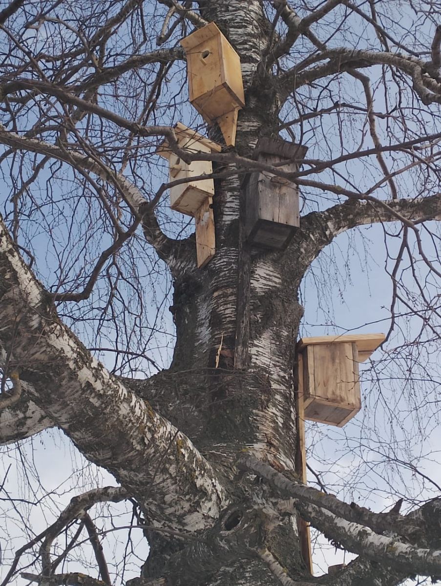 Трыш авылы башлангычсыйныф укучылары кошларга ярдэм итик акциясендэ катнаштып этилэре белэн бергә оялар ясап куйдылар. Аларны мэктэп территориясенэ урнаштырдылар.
