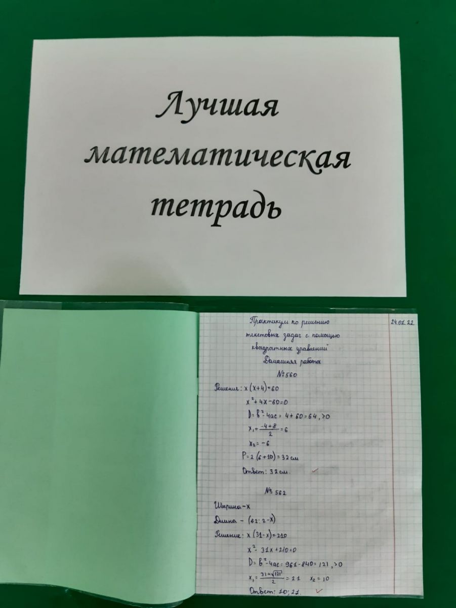 Математика фәне атналыгы кысаларында Шакирова Лилия Лябибовна 5 нче һәм 8 - 11 нче сыйныф укучылары арасында "Иң яхшы математик дәфтәр" дип исемләнгән бәйге үткәрде.