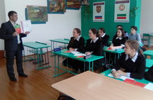Татарстан Республикасы Конституциясенең 25 еллыгына карата тарих-җәмгыять белеме укытучысы Ильяс Расимович парламент дәресе үткәрде. Ул укучыларга Төп Закон турында сөйләде, өстәмә мәгълүмат бирде.