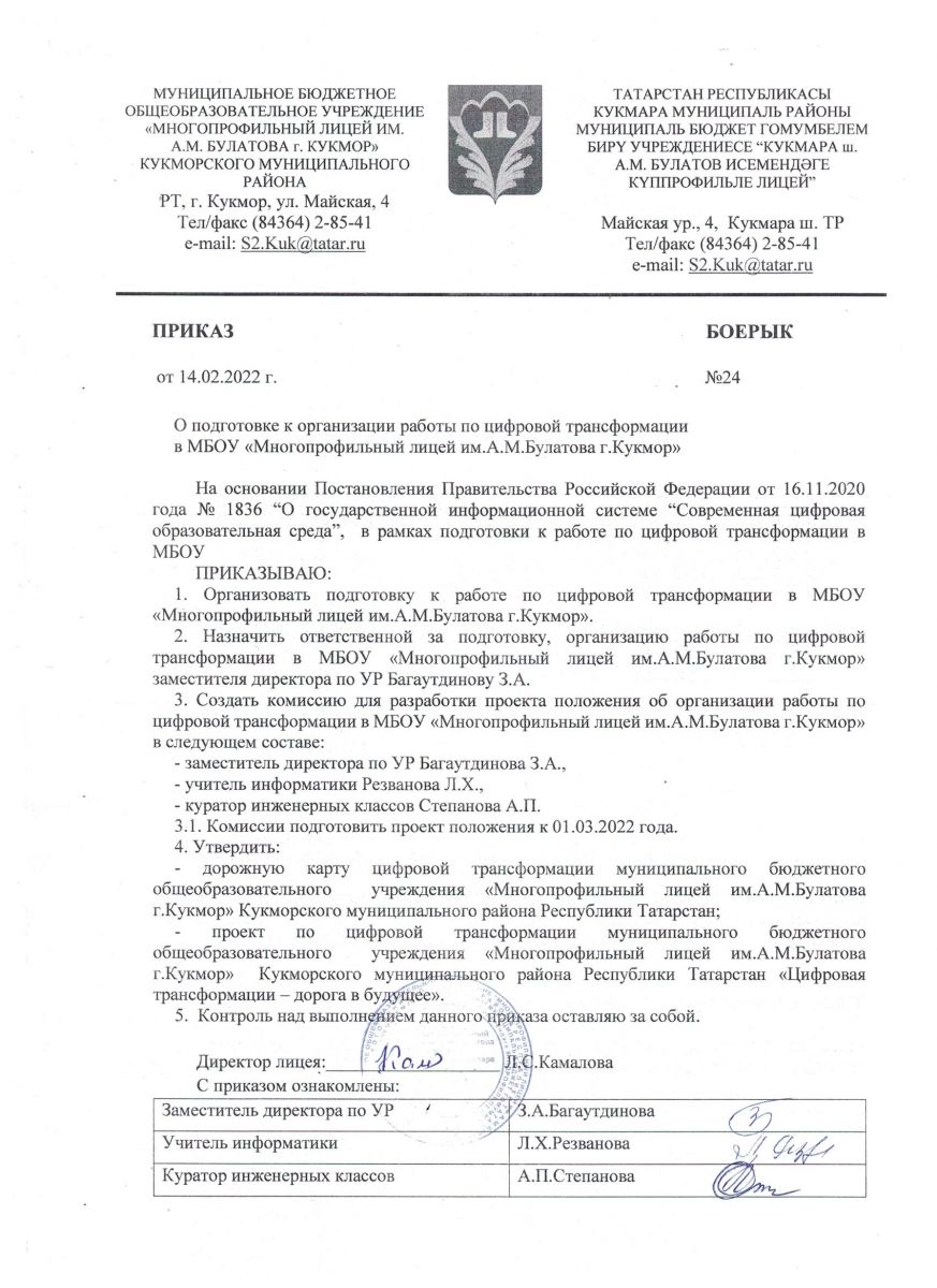 Приказ "О подготовке к организации работы по цифровой трансформации"