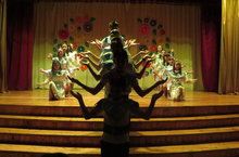 После официального вручения рюкзаков со школьными принадлежностями, творческие коллективы района порадовали гостей песнями и танцами. Ведущие провели с ребятами забавные конкурсы и игры. -