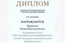 МУРАВЬЕВА КСЕНИЯ (УЧЕНИЦА 8 КЛАССА) - ПРИЗЕР РЕСПУБЛИКАНСКОЙ ОЛИМПИАДЫ ШКОЛЬНИКОВ ПО ЭКОЛОГИИ! ПОЗДРАВЛЯЕМ КСЕНИЮ И НАТАЛЬЮ ВЛАДИМИРОВНУ С ПОБЕДОЙ!!! 12.02.2018