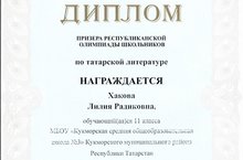 ХАКОВА ЛИЛИЯ (УЧЕНИЦА 11 КЛАССА) - ПРИЗЕР РЕСПУБЛИКАНСКОЙ ОЛИМПИАДЫ ШКОЛЬНИКОВ ПО ТАТАРСКОЙ ЛИТЕРАТУРЕ!!! ПОЗДРАВЛЯЕМ ЛИЛИЮ И ХАСАНОВУ ГУЗАЛИЮ ГАПТЕЛЬНУРОВНУ С ПОБЕДОЙ!!! 12.02.2018