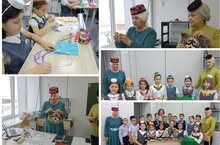 В ходе встречи мастерица провела мастер-класс, на котором ученики научились делать из фетра женское нагрудное украшение "изю", с татарским национальным орнаментом. -
