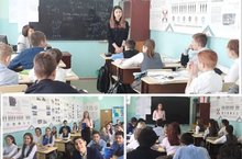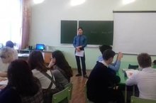 Профориентационная беседа с учащимися. Провели мероприятие наши выпускницы и уже студенты КФУ – Сафина Аделя и Хасанова Диля!