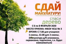 С 6 по 8 февраля в школе объявляется ЭКО-акция "Спаси дерево!" по сбору макулатуры.