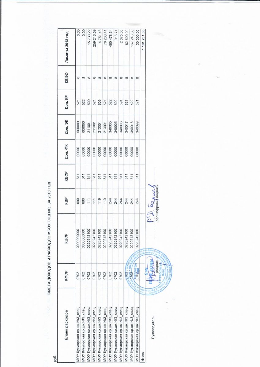 Смета доходов и расходов 2018 год