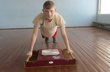 Учащиеся нашей школы Ахмадуллин Алмаз (8Б) и Шахтин Дмитрий (6В) под руководством учителя технологии и физической культуры Хазиева И.И. изобрели тренажер для учитывания количества отжиманий от пола и правильной техники выполнения этого упражнения. Тренажер идеально подходит для контроля норматива ГТО "Сгибание-разгибание рук в упоре лежа".