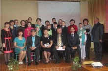 10 лет (2004 год) собрались выпускники 11В и 11Г классов, их приветствовала Хусаенова Х.З., первый учитель 11В класса
