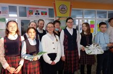 Активисты 6б класса встречали всех с добрыми пожеланиями и хорошим настроением на весь день.Бүген мәктәптә "Изге теләкләр көне". 6б сыйныф активистлары барысын да изге теләкләр һәм яхшы кәеф белән каршы алдылар.