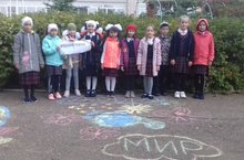 Учащиеся Владимирова Ассель (3А), Сайфутдинов Амир (3А), Ишмекеева Кира (3Б), Леонтьева Диана (3Б), Исламгалеева Самира (2А), Маняпова Амина (2А), Шарифуллина Марьям (2Б), Хуснутдинова Дина В(2Б), Волосова Ульяна (2В), Хисматуллина Амиля (2В) рисовали на асфальте добрые рисунки под девизом «Яркий город». Наш г. Кукмор заиграл яркими красками под мирным небом.