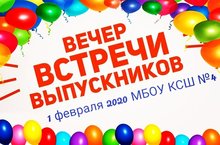 Коллектив МБОУ КСШ №4 приглашает своих коллег и всех выпускников, 1 февраля 2020 г. в 16:00, на вечер встречи, посвященный юбилею школы!