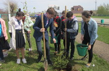 Школьному яблоневому саду больше 25 лет, поэтому решили его обновить. В субботу прошла акция по посадке яблонь в школьном саду. Каждый класс приобрел саженец яблони, и группа ребят из 8В класса посадили их.