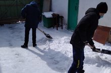 Мәктәп волонтерлары Гарифуллин Ленар һәм Исаев Артем ялгыз өлкәннәргә территорияне кардан чистартырга булыштылар.