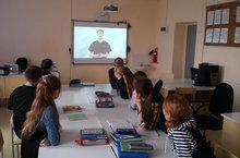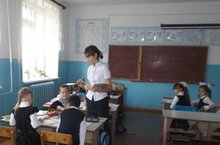 На фото урок в начальных классах ведет ученица 11 класса Насырова О.