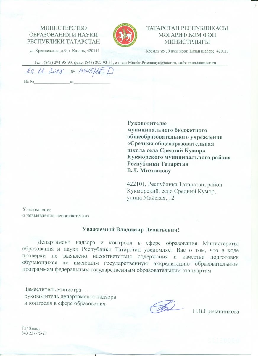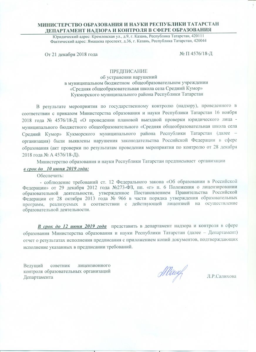 Акт об исполнении предписания департамента надзора и контроля в сфере образования