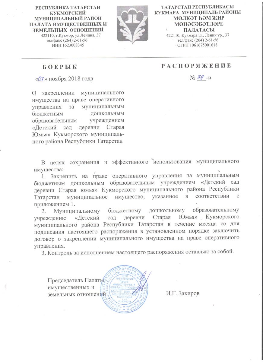 Распоряжение о закреплении муниципального имущества на праве оперативного управления
