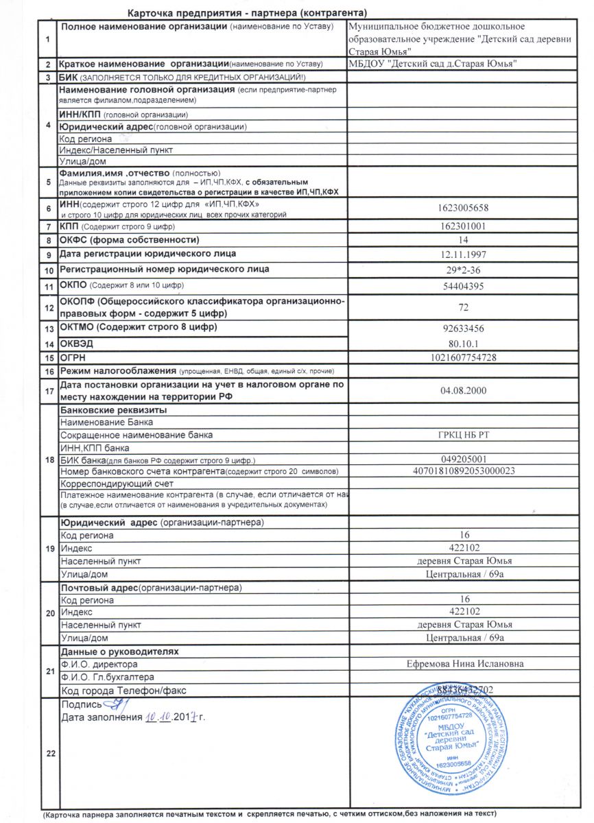 Короткое название: МБДОУ "Детский сад д. Старая Юмья" Кукморского муниципального района РТ