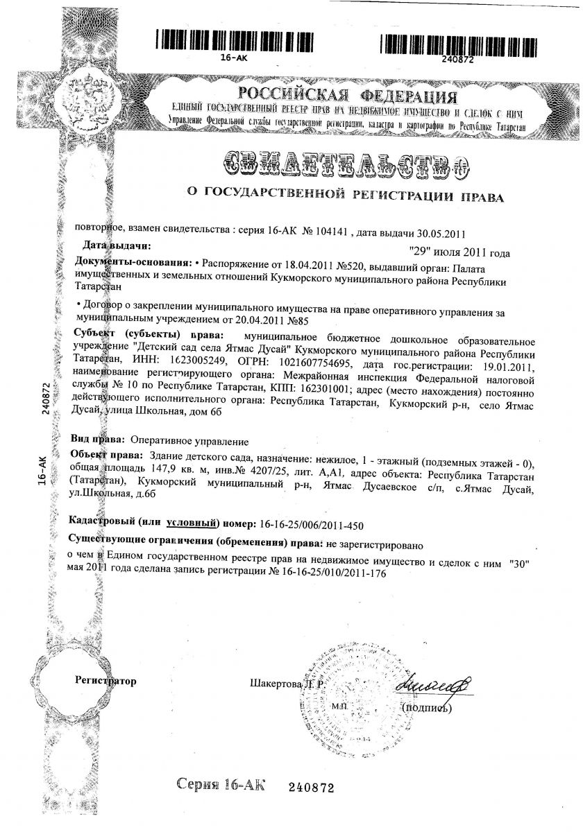 Адрес: Республика Татарстан, Кукморский р-н, село Ятмас Дусай, улица Школьная,дом 6б