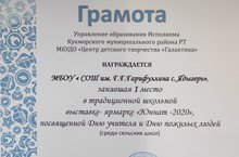 Укытучылар көне һәм Өлкәннәр көненә багышлап уздырылган "ЮННАТ-2020" көзге ярминкәдә безнең мәктәбебез авыл мәктәпләре арасында 1 нче урынга лаек дип табылды. Әлеге җиңүгә үз көчен керткән барлык катнашучыларга да олы рәхмәтебезне белдерәбез!