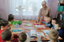 Сегодня передвижная библиотека побывала у нас в гостях. Дети с библиотекарем читали сказку, с интересом рассматривали рисунки.