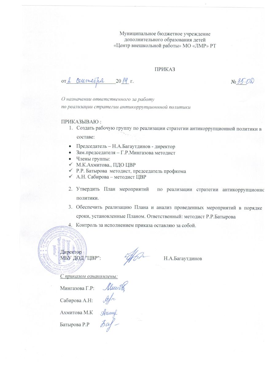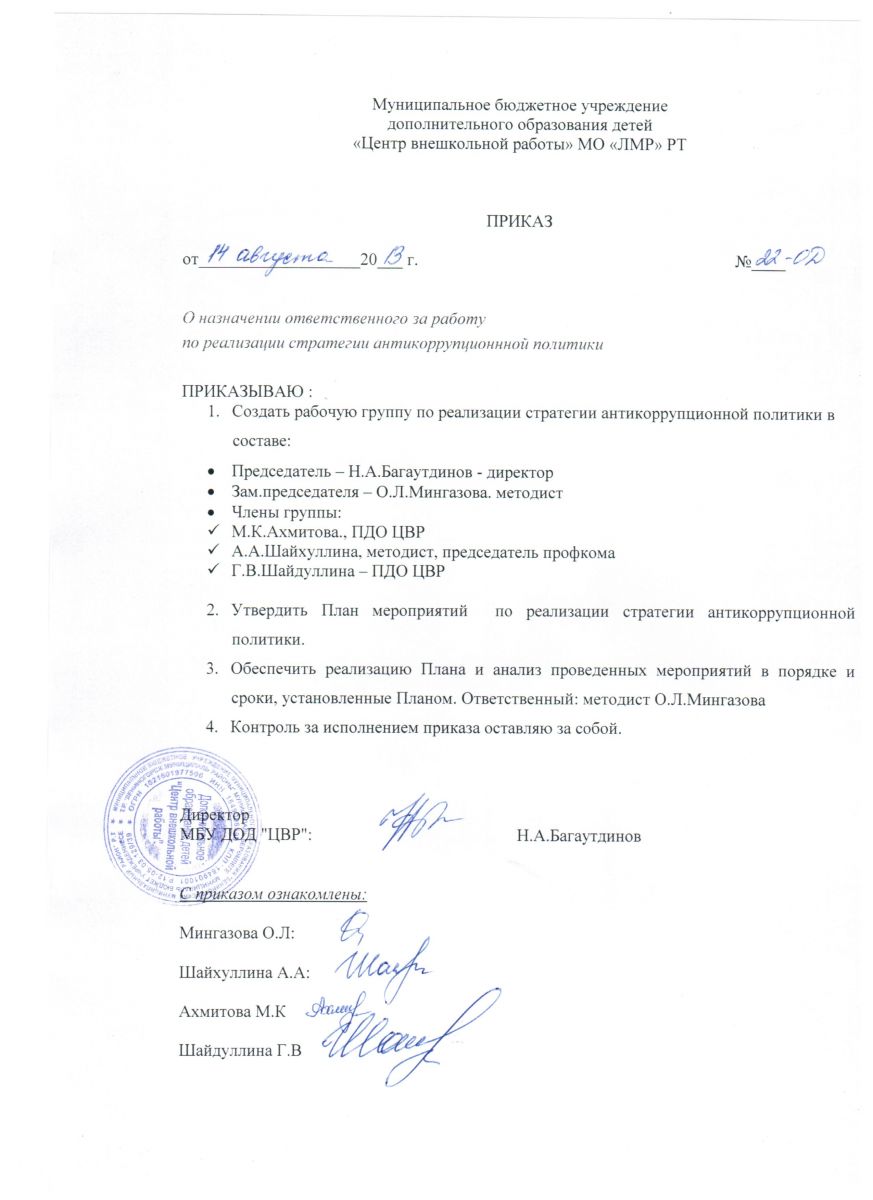 План мероприятий по профилактике коррупционных правонарушений в МБУ ДО "ЦВР" на 2021-2022 уч.год
