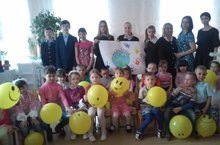 В рамках проведения Весенней недели добра, 18 апреля в гостях у ребят были учащиеся 7 класса (кл.руководитель Садыкова Г.К.). Совместно с воспитателями, они провели акцию "Дарите радость детям" Вместе, дети с удовольствием поиграли в подвижные игры. Дошколята подарили гостям танец доброты и нежности и плакат "Мир во всем мире", нарисованный своими руками, а школьники в знак дружбы подарили ребятам шарики с улыбками.