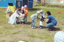На наш праздник пришла гостья , которая провела национальные игры с детьми, а в конце порадовали деток сладкими призами.