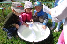 Излюбленная игра детей – пускание корабликов по воде. Сколько воображения и творчества проявили дети, изобретая свои кораблики. В результате, на воду была спущена целая парусная регата.