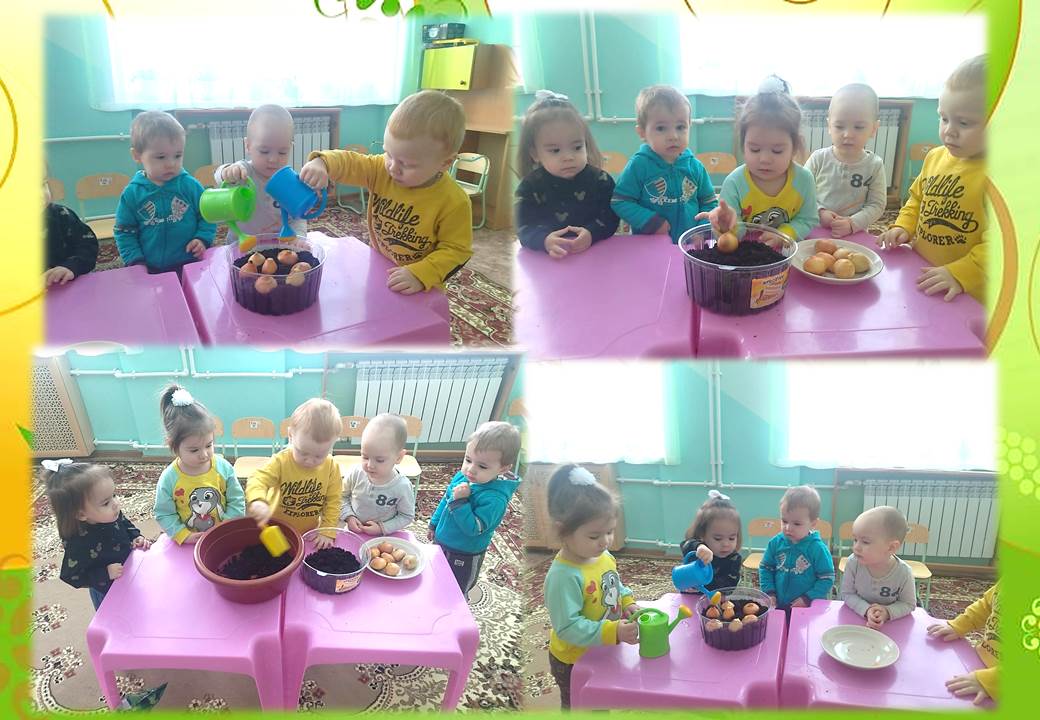 Самые маленькие воспитанники детского сада посадили лук. Воспитатель I младшей группы познакомила детей со свойствами лука: круглый, твердый, горький, заставляет плакать. Рассказала, что из него можно вырастить зеленый лук, очень полезный и витаминный.
