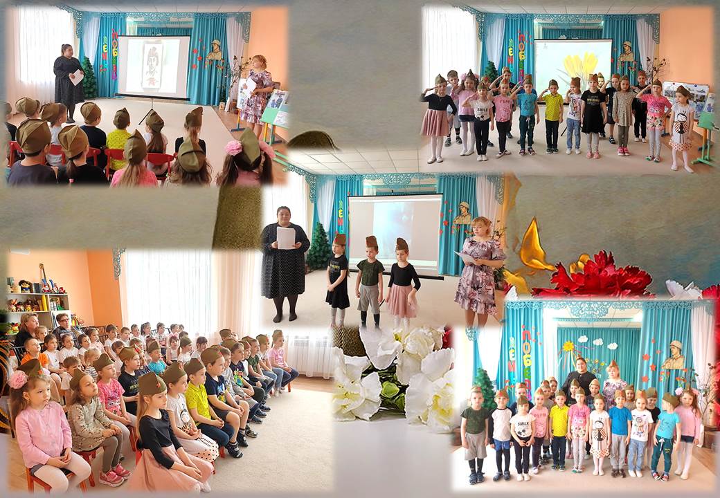 9 Май алдыннан балалар бакчасында зурлар һәм мәктәпкә әзерлек төркемнәрендә Бөек Җиңү көненә багышланган бәйрәм узды. Бәйрәм балаларда Бөек Ватан сугышы турында белемнәрне формалаштыру, үз илебез тарихы турында белемнәрне баету, халкыбызның каһарманлыгы өчен горурлык хисе тәрбияләү, армиягә карата тотрыклы кызыксыну тәрбияләү максатыннан әзерләнгән иде. Балалар зур горурлык белән үзләренең Бөек Ватан сугышында катнашкан туганнары турында фотоларын күрсәттеләр һәм сөйләделәр. Чара программасына Җиңү бәйрәме, тынычлык, солдатлар турында җырлар, биюләр, сугыш турында шигырьләр, Ватанны саклаучыларның үлемсез батырлыгы турында җырлар кертелгән.