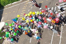 С целью организации совместной деятельности воспитателей и детей по профилактике детского дорожно-транспортного травматизма, а также формирования у детей основ безопасного поведения на улице в детском саду с 1 по 5 июля организуется тематическая неделя "Дорога без опасностей". 3 июля на центральной площади территории детского сада проведен массовый флешмоб "Мой любимый светофор!".