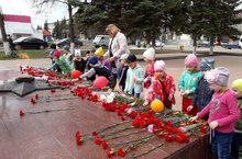 Воспитанники старшего дошкольного возраста возложили цветы к памятнику "Вечный огонь".