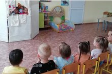 С ребятами были проведены беседы "Что такое театр?", "Правила поведения в театре", "Театральные атрибуты". Рассуждали на тему "Театр начинается с вешалки". Знакомили детей с разными видами театра и атрибутами для показа. Вспоминали знакомые сказки, способствовали вхождению детей в роли героев, активизировали в игре театр кукол-бибабо.