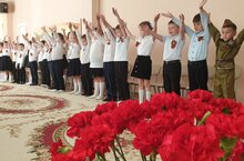 3 мая в детском саду для детей старшего дошкольного возраста прошла спортивно-патриотическая игра «Зарница». Торжественно открыли игру в музыкальном зале. Командиры сдали рапорт главнокомандующему. Затем игра развернула свои обороты на территории детского сада. Ребята выполняли задания, двигаясь по боевому маршруту. Все проявили мужество, ловкость, меткость, смекалку и продемонстрировали оказание первой медицинской помощи раненому бойцу. В итоге отыскали потерянный флаг детского сада. Затем педагоги и дети возложили цветы к памятнику "Вечный огонь".